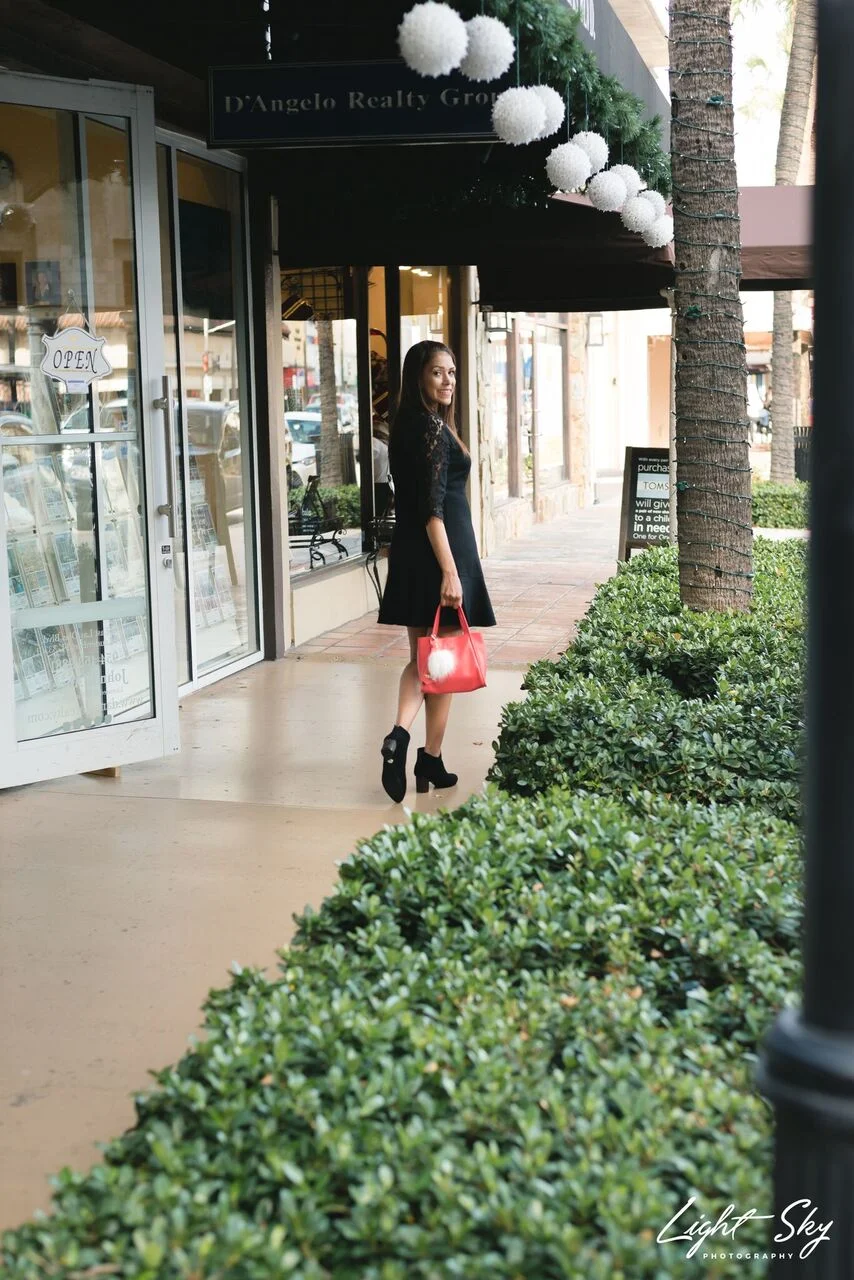 This beautiful Black Spliced Lace A-line Half Sleeve Mini Dress was photographed in downtown Fort Lauderdale by Erika Arango.