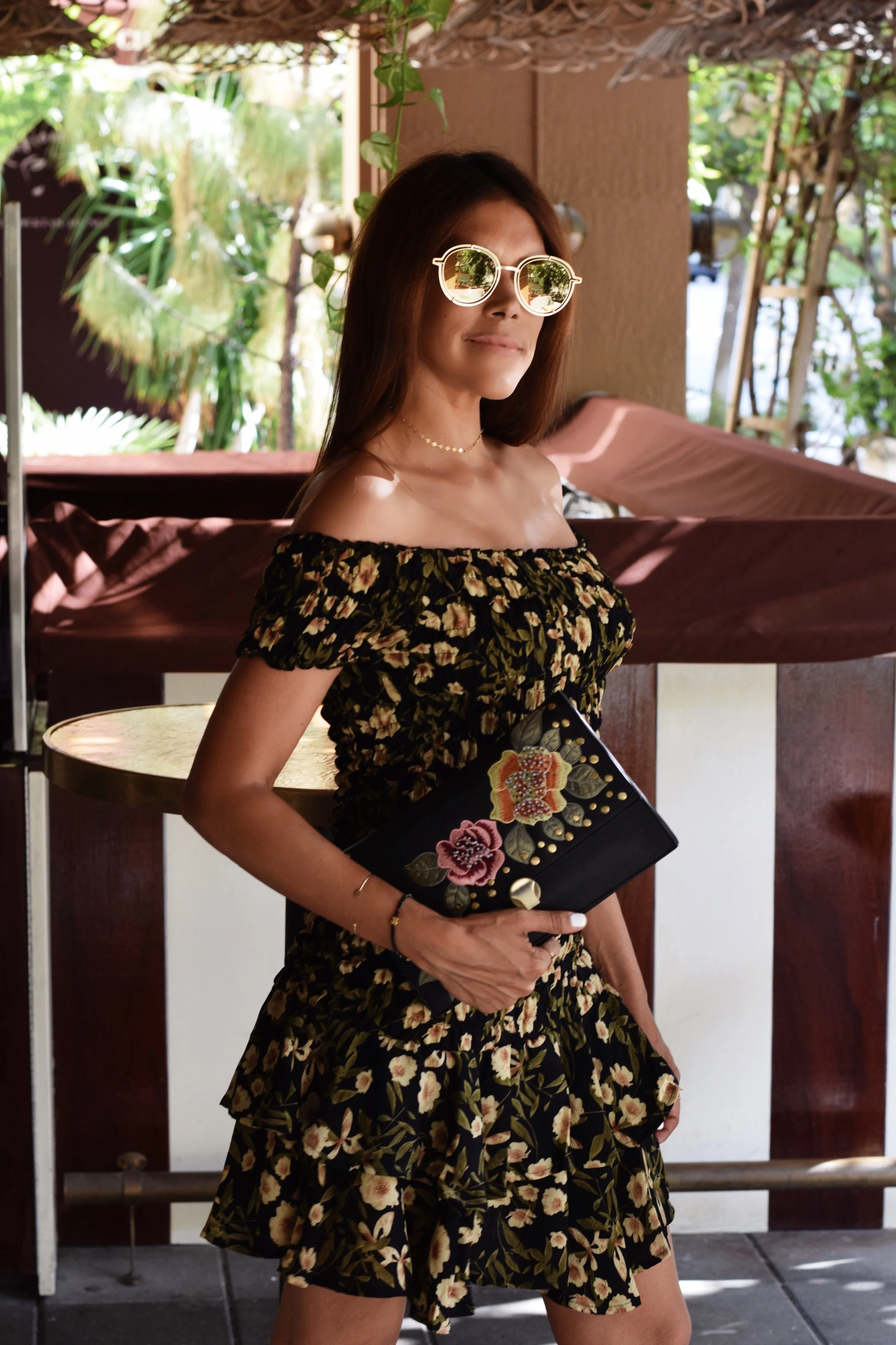 This month I'm so excited about my newest additions From Giti Online. Giti Online has always the latest trends at affordable prices. And, I couldn't wait to share photos with you!. So far, this Floral Print Set is my favorite because I love flower prints so much. The crop top and the flare skirt are so adorable, flirty and fluttering. The crop top features a strapless elastic neckline and I love the knit fabrication, tie dye coloring, double layer ruffle with raw hems and the cropped hemline. The skirt has a quenched stretchy waistline and the layers of flare mini fit. I like that both pieces are versatile and can also be worn separately.