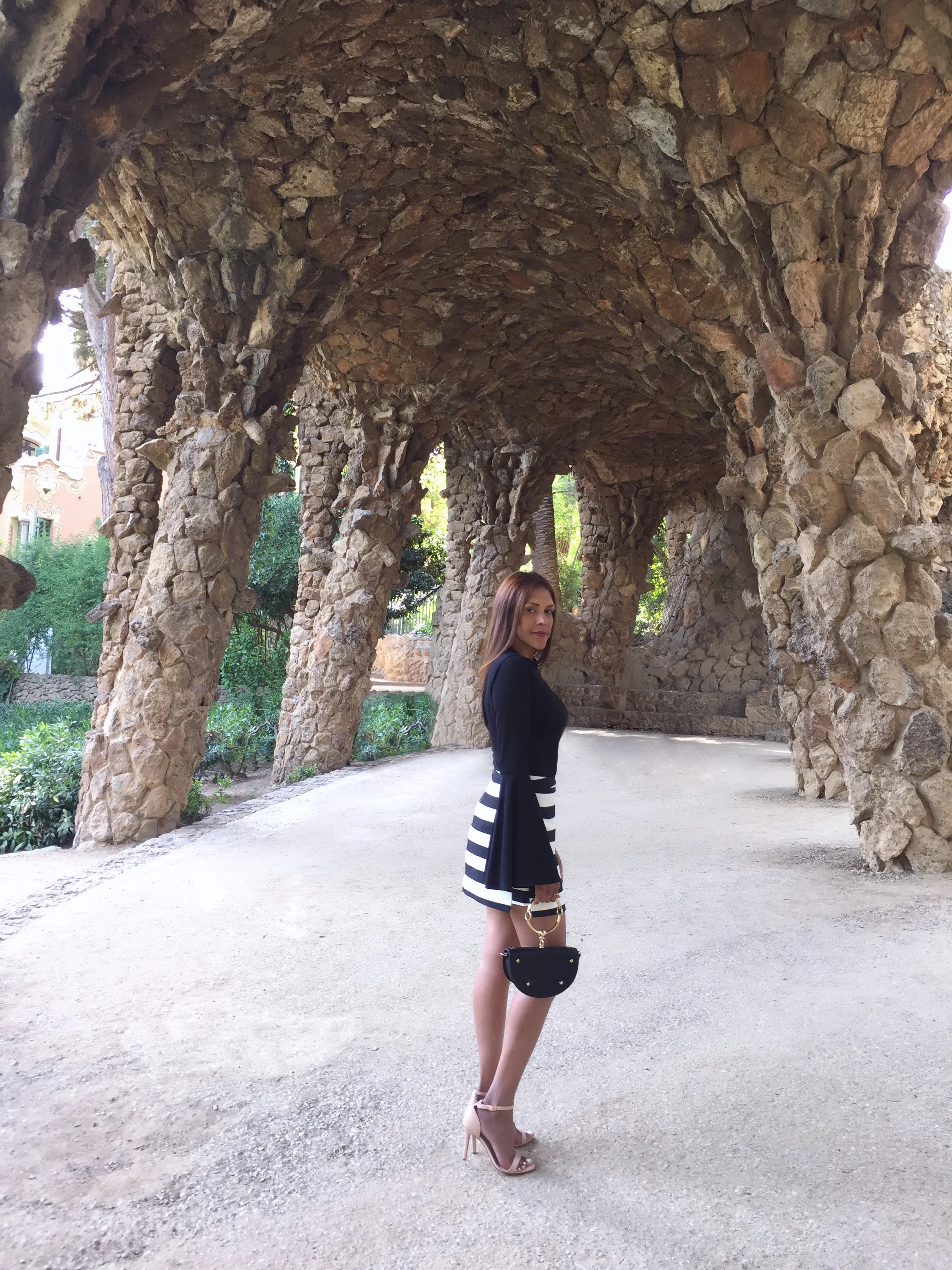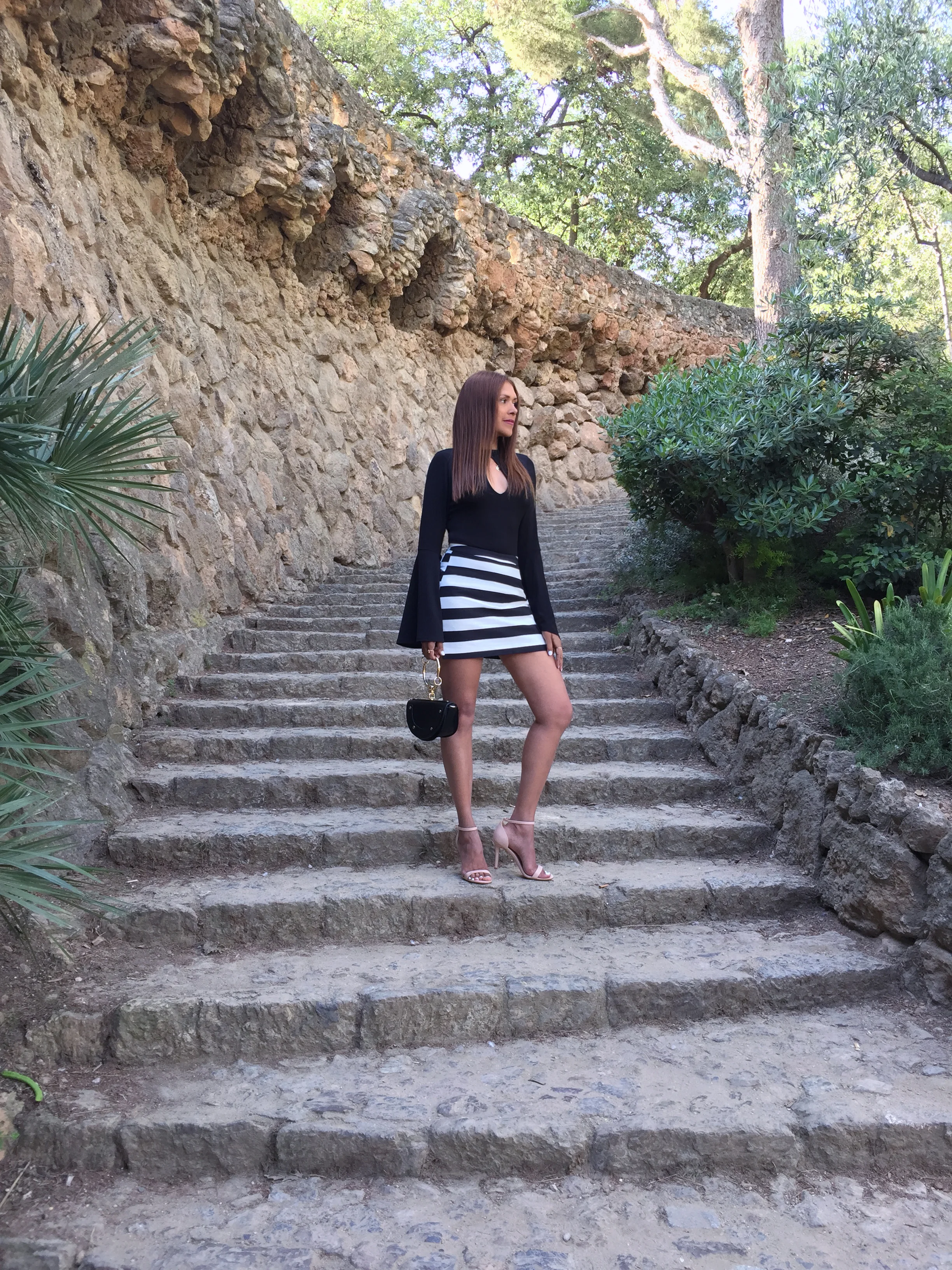 Hola Barcelona! It's been some time since the last time I was here. Barcelona has always been a treasured city in my heart. Friends, food and places like the Park Guell always keep me coming back. This time I was here for a special event and I couldn't resist shooting some pictures because I'm sure you can really tell I really love this place. Here I was wearing two of my favorite summer pieces. The striped skirt from Topshop and the lovely nude sandals designed by me at shoes of prey.